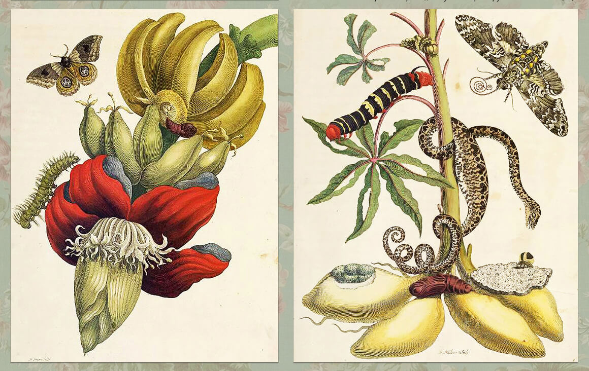Коллекция акварелей М. С. Мериан в *ranarspb (СПбФ АРАН), приобретённая в 1717 г. самим Петром I, насчитывает 184 рисунка и является одним из самых крупных собраний работ художницы. На рисунках прежде всего показан удивительный мир растений и насекомых. Однако это не просто красивые картины, а настоящий синтез искусства и науки — изображения настолько точны и аккуратны, что их по праву называют научными иллюстрациями.